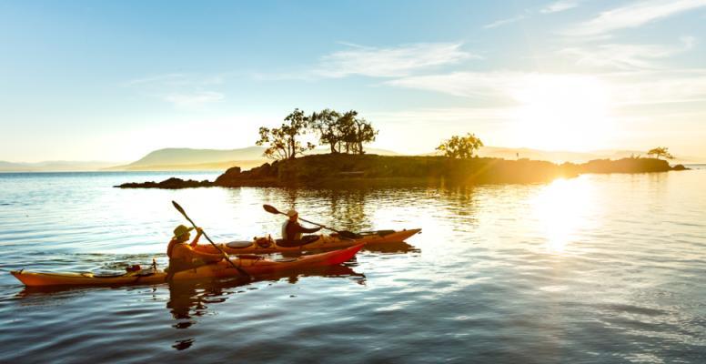 Wenn es entlang Kanadas Südwestküste eines in rauen Mengen gibt, dann sind das Wasser und Vegetation. Die Wälder heißen nicht umsonst Regenwälder. Der Pacific Rim National Park ist zu jeder Jahreszeit eine Reise wert, aber der Sommer sticht schon etwas heraus. Wie wäre es mit einer Kajak-Tour in den Gewässern des Pazifiks? Beim Anlegen gibt’s die Begrüßung des Strandwärters, der Mitglied der First Nations ist, auch schon mal inklusive. Oder doch lieber Surfen bei Sonnenuntergang? Übernachtet wird auf dem Green Point Campground, beispielsweise in einem oTENTik. Wer es noch rustikaler mag, der kann sich am West Coast Trail versuchen.