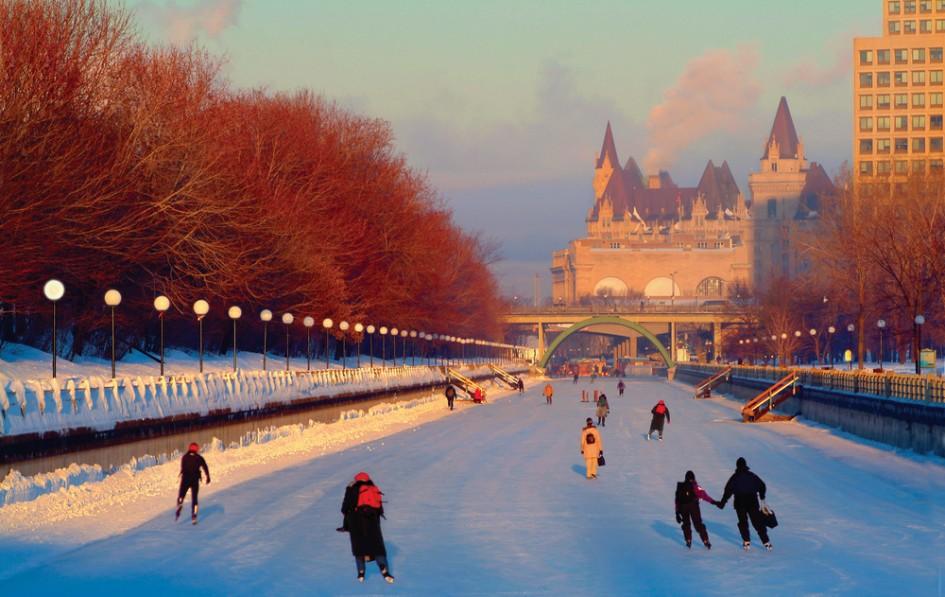 At the annual Winterlude celebration, the area is transformed into an outdoor carnival with snow maze, ice carvings garden, snow slides, concerts, ice fishing, and a pond hockey championship.
