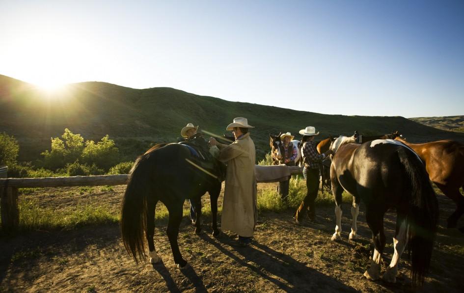 Learn to saddle and bridle horses from authentic cowboys at five-generation, century-old Reeser Ranch, Saskatchewan. These folks have been ranching in the Cypress Hills since 1904. You can join the cattle drive, traditional branding and calving, plus try grass-fed beef or a "prairie oyster."