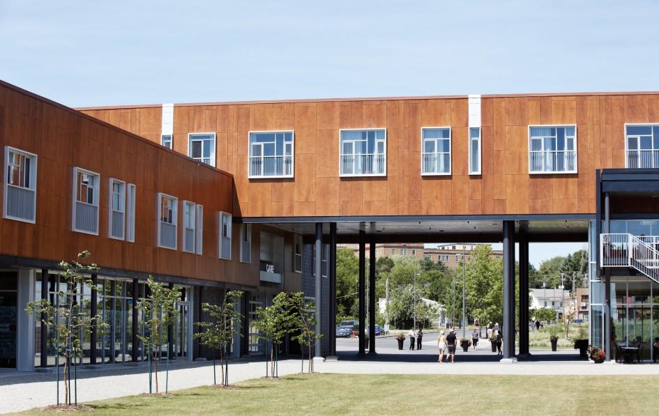 This was Canada's largest standing wooden farm, the footprint reimagined in 2012 into an unusual lodging combining rural and urban, expansive and snug. Not only does it host Sunday farmers markets, the train stop is incorporated into the compound. The owners call the 145-room, five-building complex open to its surroundings and community an "anti-resort."
