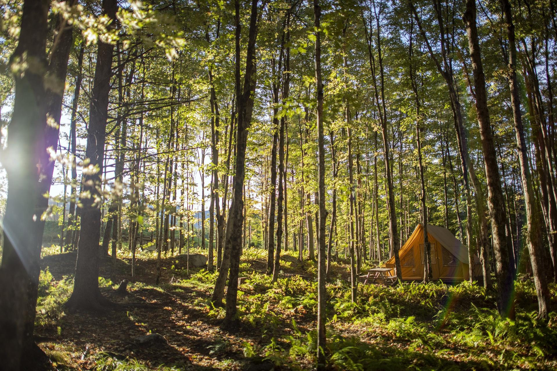 More adventure awaits when you loop back east to the town of Sutton, then drive south to Glen Sutton (12 miles/20-minute drive). An experience you won't soon forget is V?loVolant, which translates to "canopy cycle." Sit back on a suspended recumbent bicycle perched in the treetops (it's like traveling a zipline on two wheels) and pedal through the canopy, getting sublimes views of Au Diable Vert, an alpine pasture. Continue the heady adventure by overnighting in one of Au Diable Vert's cabins or treehouses, like Abenaki, situated between the branches of a 100-year-old maple.