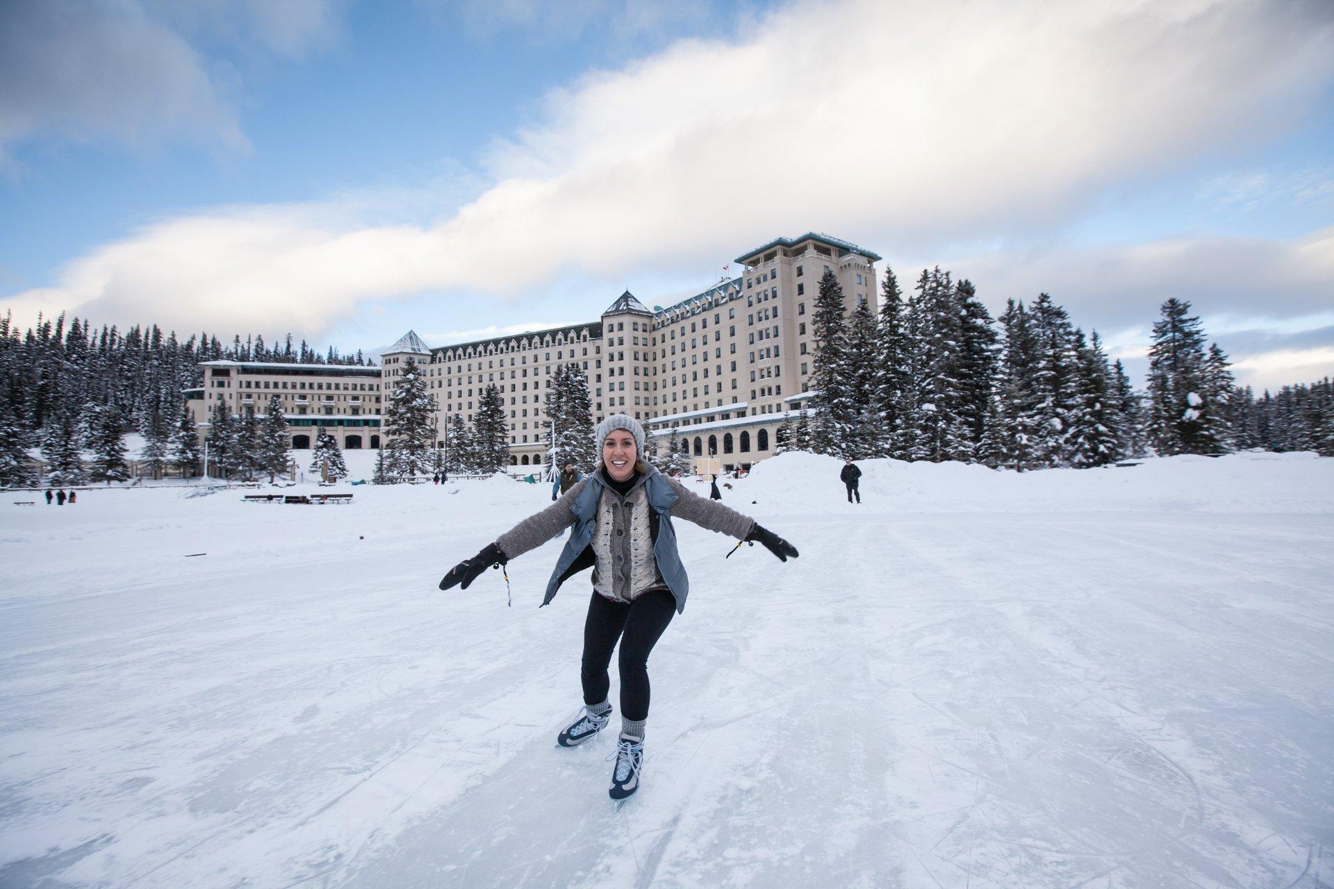そして、カナダを代表する湖の1つ、ルイーズ湖。氷が張ったら、スケート靴をレンタルして天然のスケートリンクを楽しみませんか。毎年1月になると、バンフ・アイス・マジカル・フェスティバルが開催されます。氷結した湖上には巨大な氷の城が登場し、アイススケートがさらに楽しい思い出になります。そして、1日の締めくくりは天然温泉でたっぷりくつろぎ、疲れを癒やしてはいかが。天候にもよりますが、雄大な山々の向こうに沈む夕日、ちらほらと舞う粉雪の風情ある瞬間も。寝湯のエリアでは横になって夜空を見上げながら温泉を楽しむこともできます。バンフ国立公園での1日を思い出しながら、次の訪問の計画を練るのも楽しいはずです。