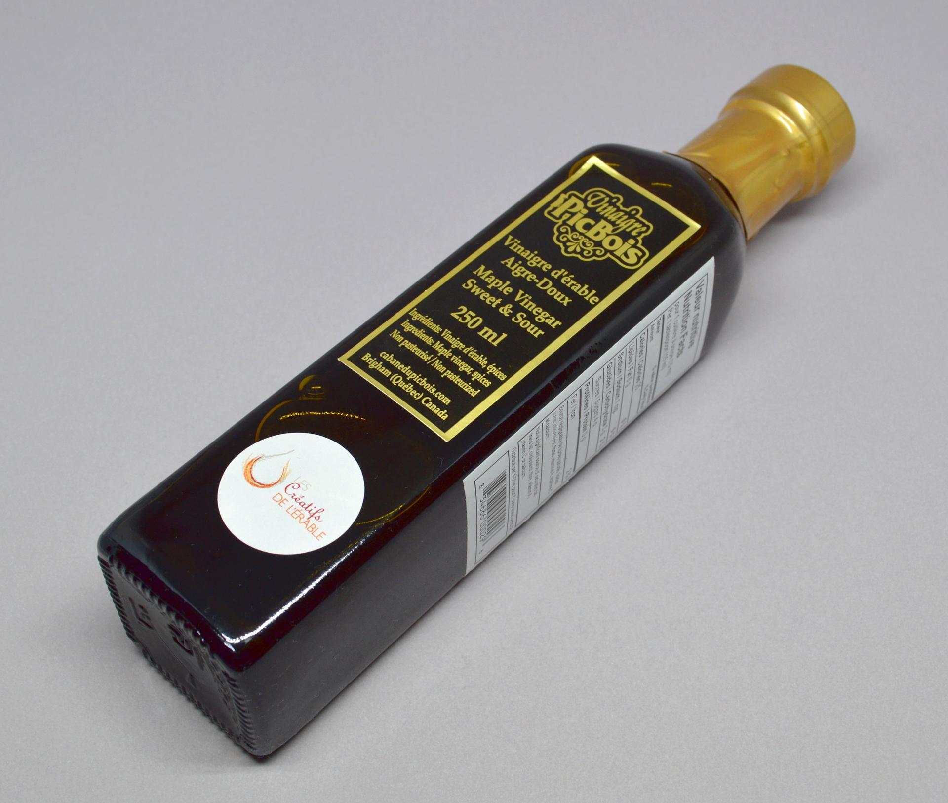アンドレさんは、極上のメープルビネガーのつくり手としても知られています。 「ふつうのメープルビネガーは酸味が強いものが多いけれど、自分は酸味がありながらメープルシロップの甘さも残し、引き立て、さらに森の香りがするビネガーを作りたかったんだ」とアンドレさん。その製法は、おばあさんが残したレシピをベースにしながら、アンドレさん自身が作り上げたオリジナルです。一般的なメープルビネガーは、砂糖カエデの樹液を発酵させたものだけで作るのに対し、アンドレさんのビネガーは、さらにメープルシロップを発酵させたものも使います。シロップの発酵過程をいつストップさせるか、そのタイミングが「企業秘密」なのだそうです。アンドレさんのメープルシロップもメープルビネガーも、世界でここにしかない味と言えるでしょう。