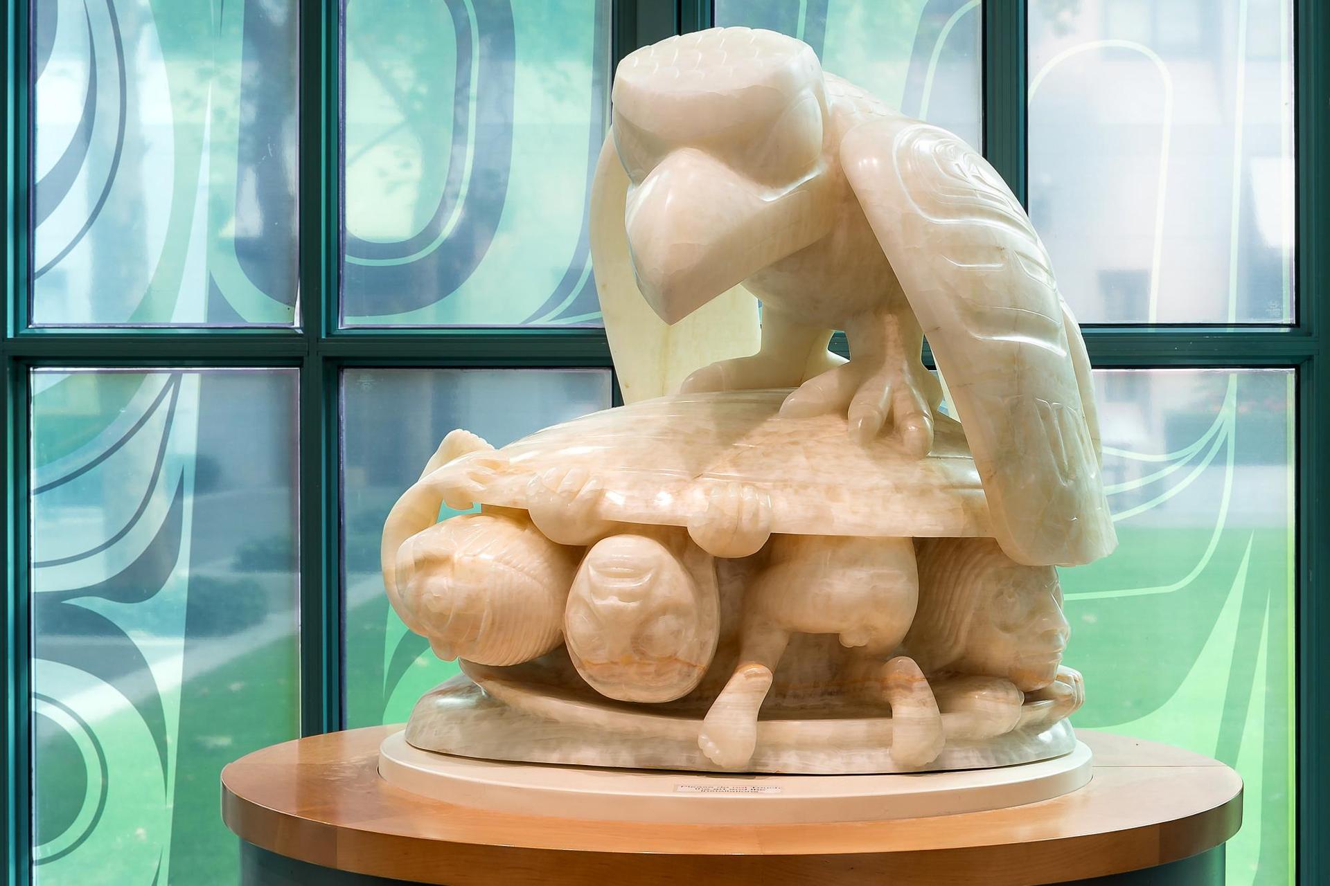 先住民アーティストとその作品に光を:先住民アートに関心のある方は、カナダのアートに多大な貢献をした先住民アーティストにぜひとも注目したいものです。ビル・リード(1920年1月〜1998年3月):ハイダ族出身のアーティスト。ハイダ族文化を前面に押し出した活動で世界的に尊敬と高い評価を集めています。著名作品には、UBC人類学博物館に展示されている重量4トンの『The Raven and the First Men』や、バンクーバー水族館(BC州バンクーバー)にある『The Chief of the Undersea World』というシャチのブロンズ像があります。また、同じくバンクーバーのビル・リード・ギャラリー・オブ・ノースウエスト・コースト・アートでも作品を見ることができます。ノーバル・モリソー(1931年3月〜2007年12月):アニシナアベ族出身のアーティスト。カナダの現代先住民アートのさきがけとして広く知られています。1970年代初期に7人の先住民アーティストが集まって法人団体「The Professional National Indian Artists Inc」を結成したことから、カナダの画家集団「グループ・オブ・セブン」になぞらえて、「インディアン・グループ・オブ・セブン」(グループ・オブ・セブンの先住民版)の1人に数えられます。モリソーは、伝統的な物語をベースにした作品や聖霊をテーマにした作品、政治的メッセージを反映した作品で知られます。