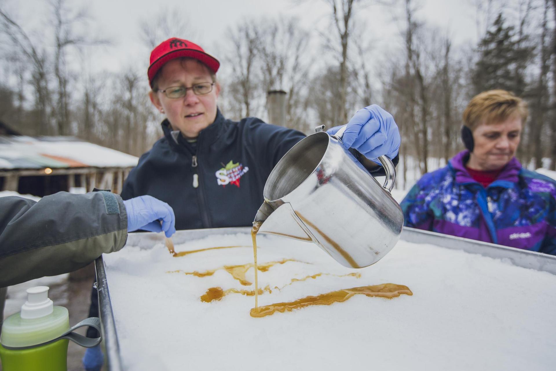 甘い香り豊かなフェスティバル:メープルシロップのシーズンと言えば、忘れてはいけないのがメープルシロップを前面に押し出した地元のフェスティバル。オンタリオ州エルミラでは、3月に終日のイベント、エルミラ・メープルシロップ・フェスティバルが開催されます(2022年の日程はウェブサイトを参照)。取れたての新鮮なメープルシロップをたっぷり使ったふんわりパンケーキが振る舞われます。ケベック州サン・ジョルジュのフェスティバル・ボースロン・ドゥ・レラーブル(4月1日〜30日)は、メープルを生かした料理のほか、子供たちに人気のスーパー滑り台やお城型の巨大ふわふわ遊具、野外ステージが登場します。オンタリオ州トロントのシュガーシャックTOは、できたてのメープルタフィー、メープル・フライドチキン・タコスやメープルバッファロー・テイタートッツ・プーティンなどメープル風味のほっとする味を提供するシューガーシャックが2つあるほか、焚火台や薪ストーブで体を温められるコーナーもあります。さらに、メープル樹液採取の実演もあります。