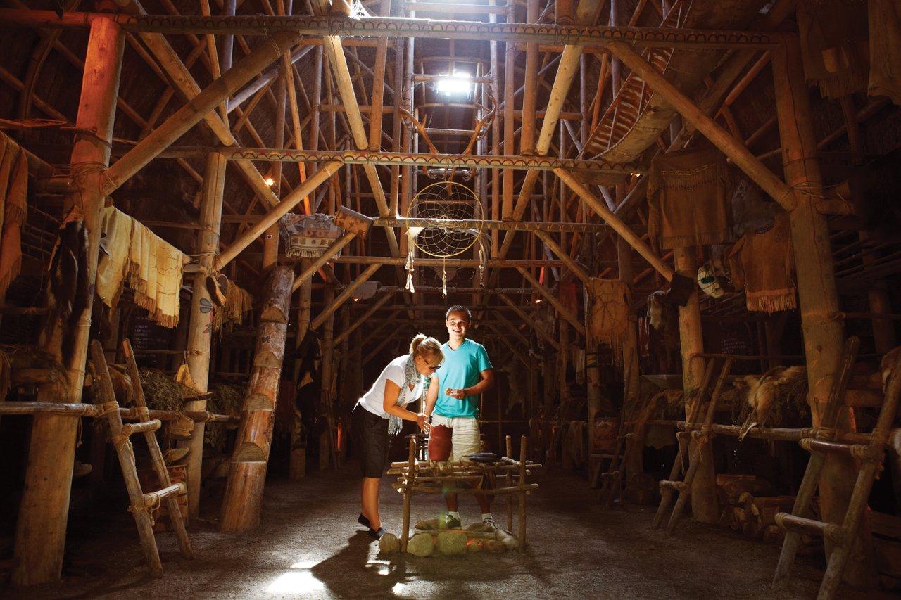 ・ワンダケ:ケベック州にあるウェンダケには、ヒューロン・ウェンダット族の歴史や文化に敬意を込めた体験が豊富に揃っています。ケベックシティから車で30分のオテル・ミュゼ・プルミエ・ナシオン(ホテル・ミュゼ・プリミアズ・ネーションズ)では、アート感覚いっぱいの装飾品や緑豊かな森の景色、静寂に包まれたアキアウェンラク川の爽やかな水音など、ヒューロン・ウェンダット族の土地や文化にどっぷりと浸かることができます。同ホテルの威風堂々たる建築は、先住民の伝統的な住居「ロングハウス」にヒントを得たもの。それを取り囲む庭園やハイキング・トレイルはあれこれと思いを馳せたり、気分転換をしたりするのにぴったりです。近くにあるヒューロン・ウェンダット博物館は、ヒューロン・ウェンダット族の遺産の保護や振興を目的に設立されたもので、何千年にもわたる伝統に理解を深めることができます。アクセス:空路でケベックシティに入り、車で30分でワンダケ