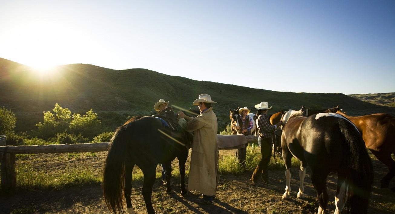 Set in the Saskatchewan River Valley, with rolling grassy hills and canyons, the occasional coyote stealing by, the place really does look like it’s right out of a Wild West movie. This is the land where Blackfoot and Crow once camped and hunted buffalo across the plains. City slickers are welcomed and brought right into the action.